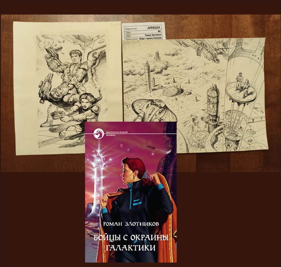 Состояние: близкое к отличному Полный комплект книги. Оригиналы рисунков - 3 шт.: Цветная обложка - разворот(А3 30х40), Черно-белые(А4) - Фронтиспис, Форзац. / Книжная серия «Фантастический боевик» основана в 1992 году. Это самая популярная и обширная по количеству томов отечественна