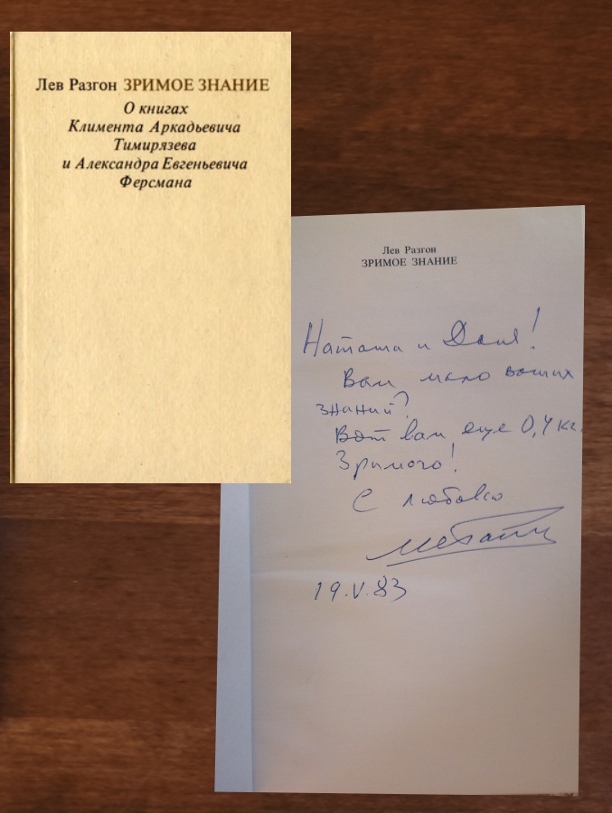 Автограф Льва Разгона Состояние: отличное О замечательных книгах, написанных выдающимися русскими учеными и блестящими популяризаторами К.А. Тимирязевым (Жизнь растения) и А.Е. Ферсманом (Воспоминание о камне и Занимательная минералогия). Увлекательный рассказ о том, как создавались эти книги, на