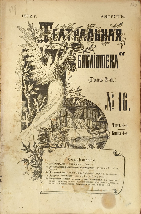 журнал  Т-во Кушнерев и К, 1892г. Мягкий переплёт, Увеличенный формат, 66стр.,  Состояние: хорошее