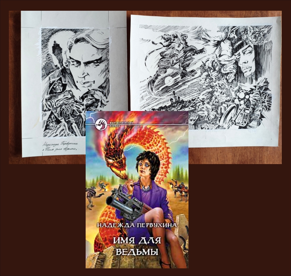 Оригиналы рисунков - 2 шт.: Черно-белые(А4) - Фронтиспис, Форзац. / Книжная серия «Фантастический боевик» основана в 1992 году. Это самая популярная и обширная по количеству томов отечественная серия фантастики.