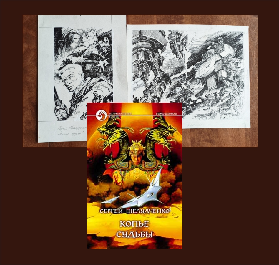 Оригиналы рисунков - 2 шт.: Черно-белые(А4) - Фронтиспис, Форзац. / Книжная серия «Фантастический боевик» основана в 1992 году. Это самая популярная и обширная по количеству томов отечественная серия фантастики.